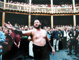 This is a picture of Martin Herdman in 'As You Like It' at Shakespeare's Globe Theatre.