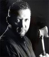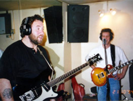 Martin in a recording studio making an album with The Blue Sniffers.